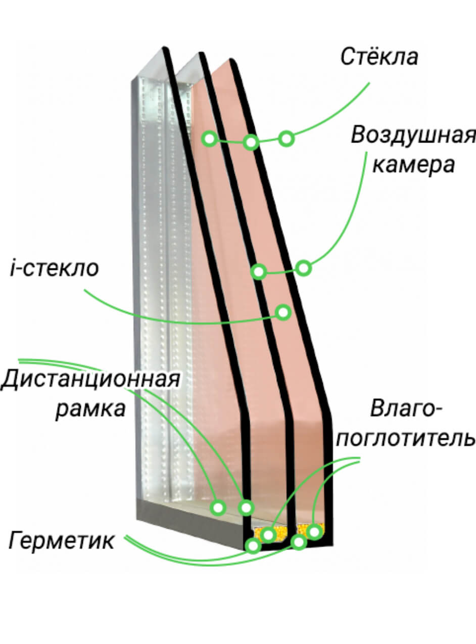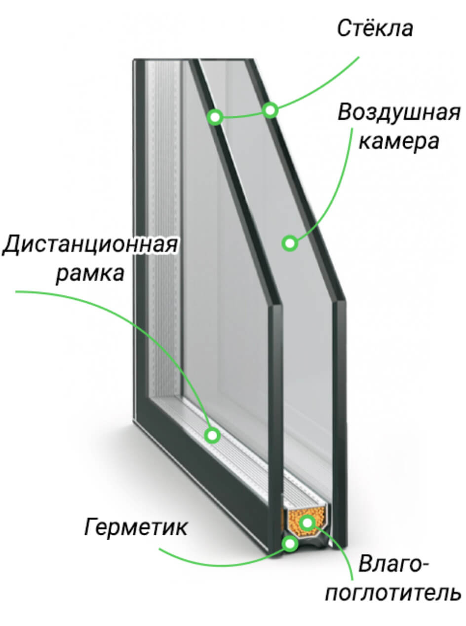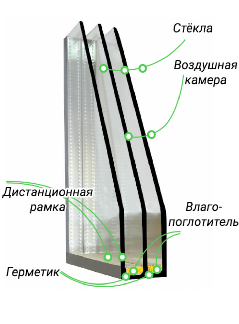 Двухкамерный стеклопакет состоит из трех герметично скрепленных между собой стекол.